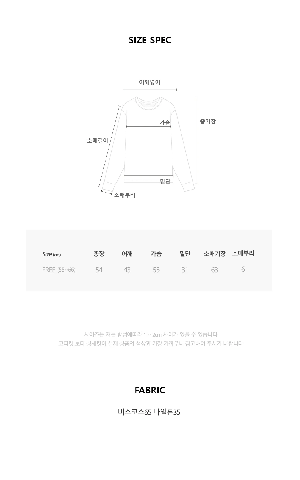 사이즈 단위는 cm이며, 재는 위치에 따라 약간의 오차가 생길 수 있습니다.