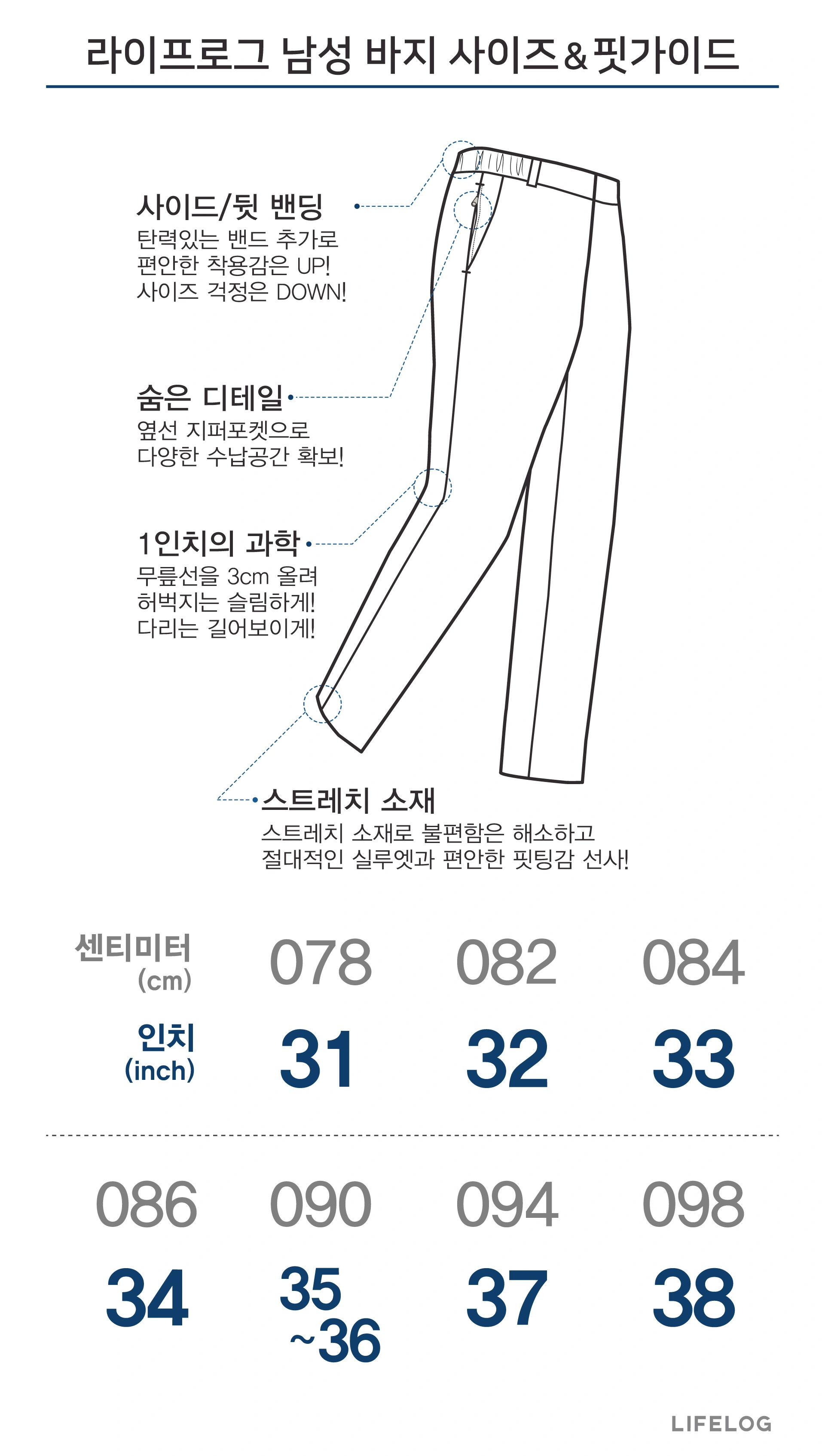 스트레치 원단을 사용한 캐주얼 면 팬츠