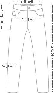 | 사이즈 | 총기장 | 허리둘레 | 엉덩이둘레 | 허벅지둘레 | 무릎둘레 |